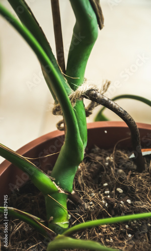 monstera, node, stalk, dirtied, houseplant, new growth, stem, closeup, cut, environment, exotic, foliage, fresh, green, growth, leaf, nature, new, plant, season, small, spring, summer, tiny, tropical, vertical