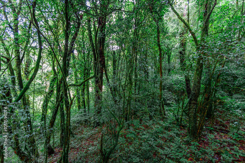 Close-up natural background of the forest atmosphere on top of Doi Inthanon in Chiang Mai, which is the highest and coldest area in Thailand. Tourists always like to come to see nature.
