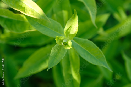 Closeup nature view of green leaf in the garden