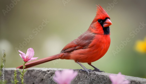 Close-up Northern Cardinal perching on branch,Bird Photography