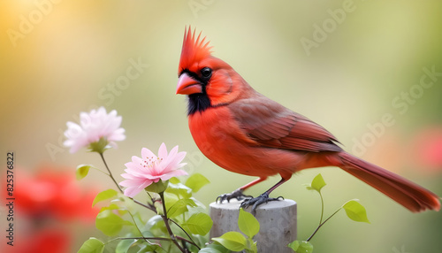 Close-up Northern Cardinal perching on branch,Bird Photography