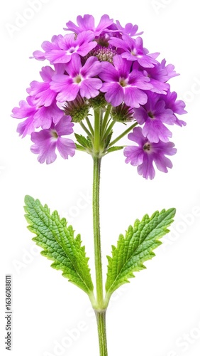 verbena, flower, purple, lavandula, lilac, green, leaf, stem, plant, floral, botanical, macro, closeup, nature, summer, spring, garden, bloom, blossom, white background, isolated, cut-out, single flower, herbaceous, decorative, ornamental, fragrant, aromatic, vibrant, detailed, texture, flora, fresh, growth, beautiful
