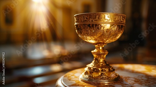 chalice, gold, ornate, sunlight, intricate, craftsmanship, gold, antique, luxury, elegance, decoration, detailed, goblet, religious, ceremonial, vintage, precious, artifact, beautiful, shiny, historic, metalwork, artistry, classic, masterpiece, royals, bright, gleaming, worship
