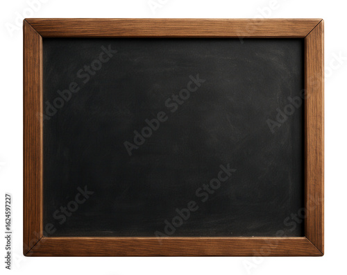 Close-up of a blank blackboard with a wooden frame, perfect for educational or instructional themes, highlighting simplicity and versatility for various text overlays.