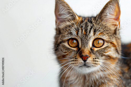 Close-up of a brown-eyed cat on a white background, in a studio shot, with high resolution photography.