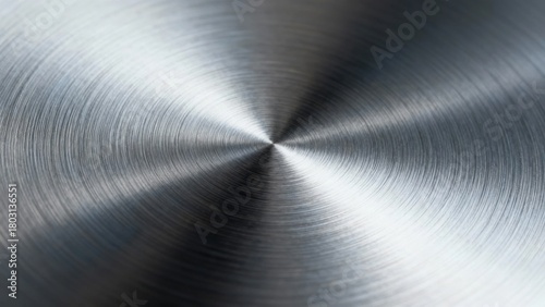 Close-up of a brushed metal surface with concentric circular patterns and reflective highlights