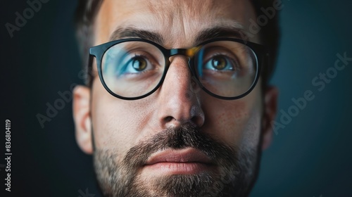 Close-up of a businessman's face, showing curiosity and engagement