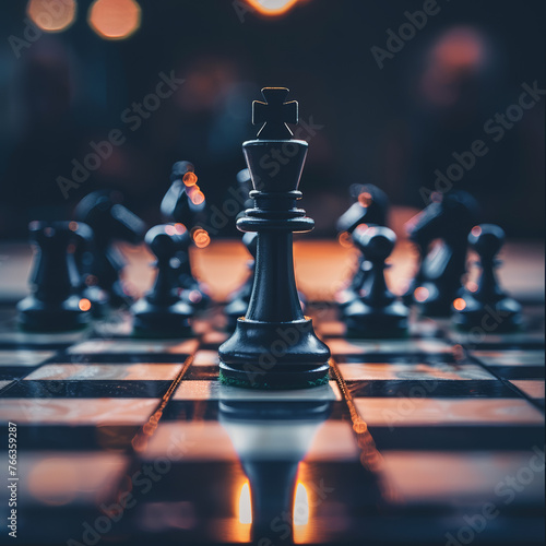 Close-up of a chessboard, a visionary move in play, strategic pieces aligning for success under spotlight