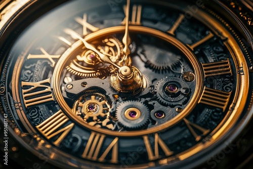 Close-up of a Complex Watch Mechanism with Roman Numerals
