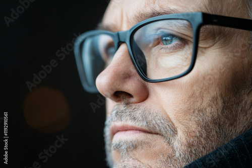 Close-up of a contemplative man with glasses reflecting on life in a cozy indoor setting