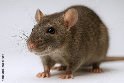Close-up of a cute brown mouse with detailed fur and whiskers on a plain white background.