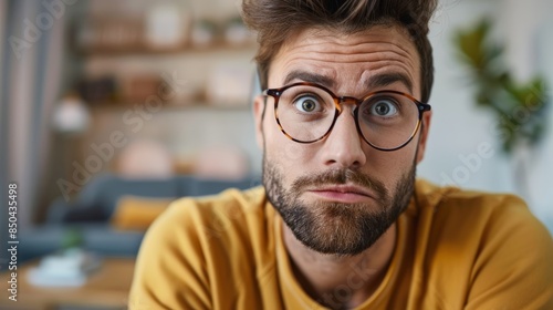 Close-up of a disappointed expression after receiving an item that doesnt match the online description