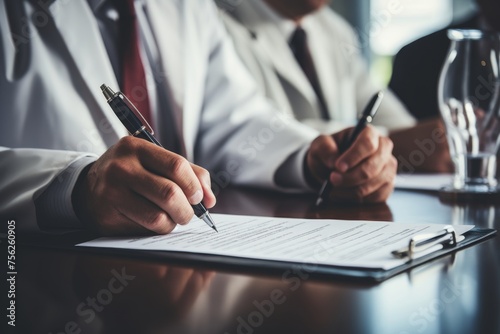 Close-up of a doctor taking notes. Medicine and healthcare concept
