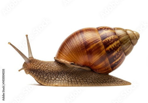 snail, giant, african, shell, mollusc, animal, wildlife, nature, slow, isolated, macro, closeup, garden, creature, gastropod, white, background, tentacle, wild, life, fauna, creep, brown, pattern, spiral, texture, exotic, 1, single, crawl