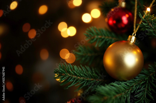 christmas ornament, bauble, decoration, holiday, christmas tree, tree branch, festive, decor, ornament, hanging, decorating, glowing, shining, celebrate, capturing, enjoying, displaying, lighting, focusing, gold, blurred background, warm light, bokeh, closeup, shiny, illuminated, soft focus, christmas, holiday season, winter, celebration, home decor, traditional, holiday spirit, joy, warmth, nostalgia, tradition, togetherness, elegance, peace, festivity
