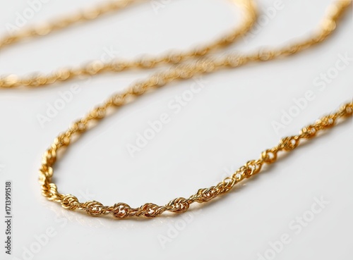 gold, chain, necklace, rope, jewellery, accessory, metal, fashion, design, closeup, detail, texture, wire, cable, link, style, luxury, elegant, simple, modern, classic, fine, delicate, accessory, cabled, intertwined, metalwork, crafted, hand-made, beautiful, glamourous, shining, light, bright, white, background, studio, photograph, macro, product, image