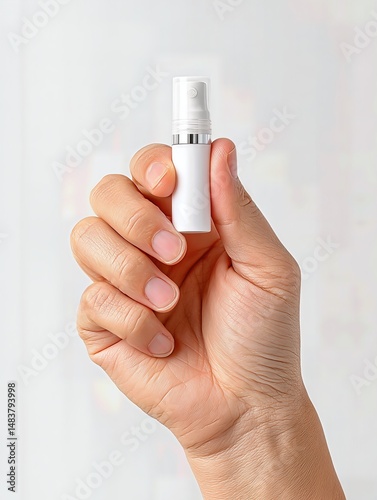 ampoule, hand, holding, science, laboratory, health, medicine, ingredient, cosmetic, purity, isolation, closeup, clear, liquid, experiment, research, pharmaceutical, skincare, beauty, health care, medicals, wellness, innovation, discovery, technology, analytical, testing, product, isolate, chemical, process, detailed, macro, studio, neutral, white background, health industry