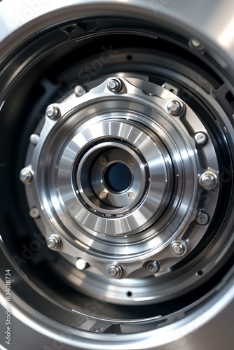 Close-up of a high-tech machine, showcasing a detailed metallic mechanism. The intricate design and precision engineering create a visually captivating scene