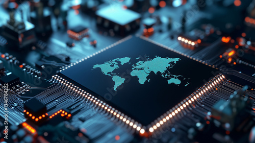 world map, international, high technology, closeup, technology, innovation, circuit board, manufacturing, digital, communication, data processing, connectivity, microchip, data storage, computer hardware, electronic, information technology, production, component, network, research, development, engineering, future, trade, supply and demand, interconnected, advancement, data transmission