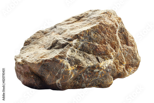 Close-up of a large, textured brown rock with intricate details, isolated on a transparent background. Perfect for geology studies and natural decorations.