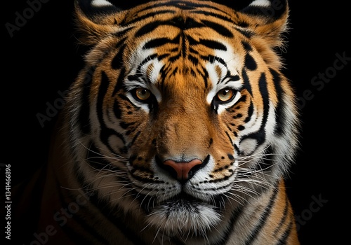 Close-up of a majestic tiger against a black background. Generative Ai