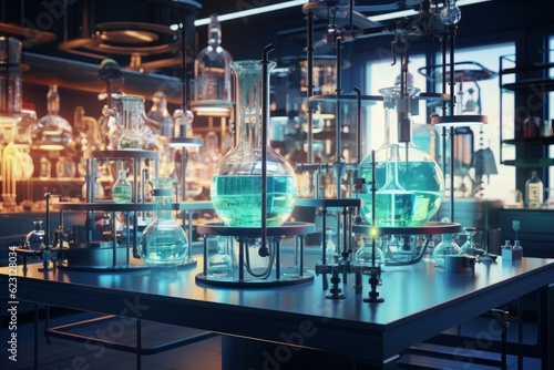 Close-up of a modern science laboratory with test tubes. generative AI