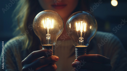 light, bulb, comparison, electricity, bill, finance, savings, closeup, decision, cost, reduction, utility, expense, household, economy, choice, environmentally friendly, consumption, efficiency, lighting, option, consumer, spending, budgeting, frugality