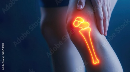 Close-up of a person holding their knee, with an x-ray showing the bones, highlighting pain and injury.