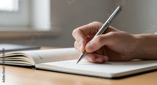 hand, writing, pen, notebook, paper, closeup, note, journal, desk, person, study, learning, work, education, business, productivity, planning, creativity, daily, routine, lifestyle, blank, white, page, organised, detailed, human, thought, idea, schedule, goal, drafting, document, task, school, office, private, copy space, stationery, book, elegant