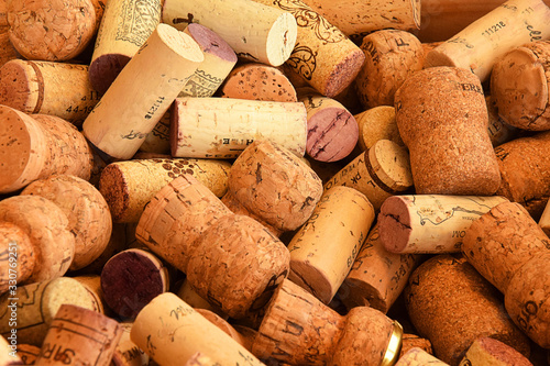 alcohol, beverage, brown, cork, drink, frame, heap, horizontal, massa, object, overhead, pile, rustic, stopper, used, wine, wood, wooden, worn