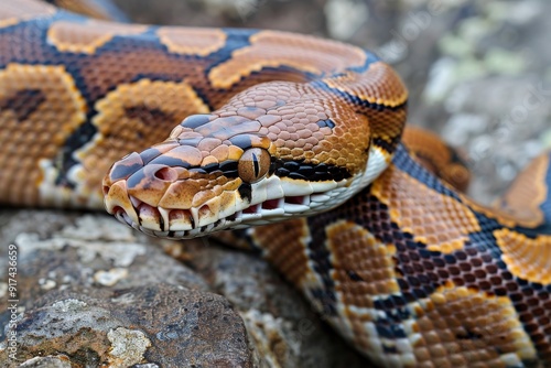 Close-up of a python. Snake isolated on a blurred background. Snake head and eyes.. Beautiful simple AI generated image in 4K, unique.