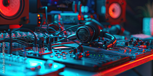 Close-up of a radio host's desk with microphones and soundboards, symbolizing a job in radio broadcasting
