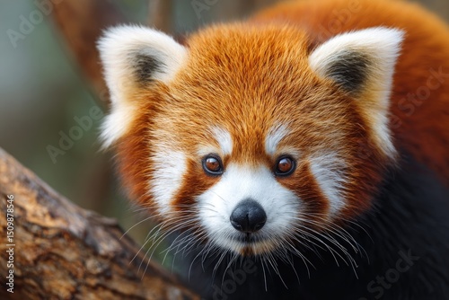 Close-up of a red panda's face.