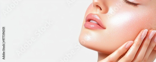 close, face, smooth, serene, woman, glow, skin, isolate, clean, white, beauty, aura, partiality, gentle, skincare, portrait, closeup, facial, lifestyle, make-up, radiant, natural, elegance, wellness, freshness, essence, treatment, brightness, female, allure