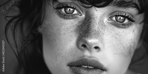 Close-up of a woman with freckles. Perfect for beauty and skincare concepts