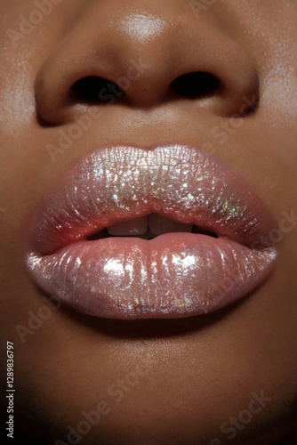 Close-Up of a Woman’s Lips with Pearl Lip Gloss