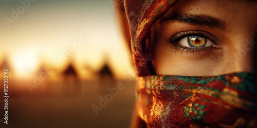 woman, eye, face, veiled, desert, sunset, camel, vans, middle, east, arabian, culture, tradition, headscarf, beauty, gaze, intense, mysterious, portrait, closeup, detail, warm, colours, gold, hours, dusk, silhouette, landscape, travel, nomad, journey, outdoors, arid, sand, horizon, light, shadow, pattern, textile, ornate, vibrant, ethnic, fashion, glance, human, expression, spirit, spiritual