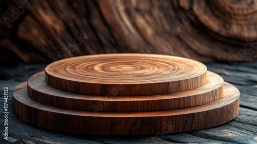 Closeup of a wooden podium surrounded by agar wood, sandalwood, and cedar wood, showcasing natural textures and colors, highlighting craftsmanship, elegance, and natural beauty.