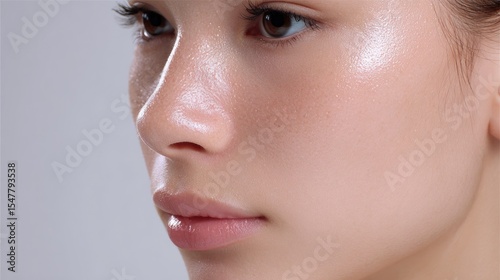 face, woman, closeup, skin, beauty, portrait, healthy, glowing, aesthetic, young, natural, smooth, feature, profile, make-up, skincare, shine, youth, feminine, model, cosmetic, clean, fresh, elegance, emotion, expression, radiant, soft, photogenic, lifestyle, wellness, natural light, eye, eyebrow, lip, nose, highlighter, peach, complexion, glossy, facial, atmosphere, serene, intimate, detail