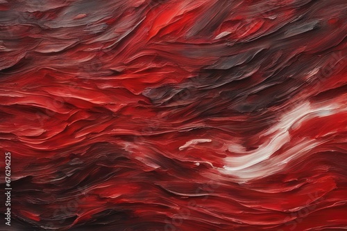Closeup of abstract rough colorfuldark red art painting texture background wallpaper, with oil or acrylic brushstroke waves, pallet knife paint on canvas