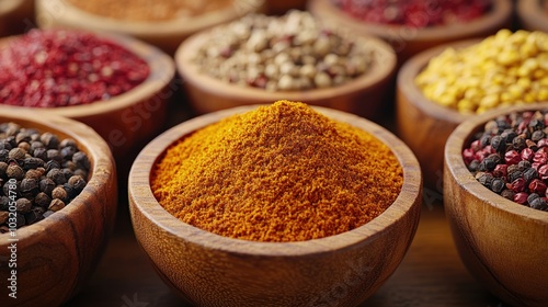 spice, spice, turmeric, peppercorn, peppercorn, red pepper, chili, paprika, cumin, coriander, ginger, cinnamon, saffron, curry, seasoning, flavouring, ingredient, food, cooking, kitchen, culinary, herb, aroma, natural, organic, fresh, healthy, colourful, vibrant, texture, rustic, wood, bowl, bowl, background, closeup, macro, photo, still life, epicure, cookery, kitchen utensile, kitchen utensile