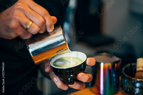 Close-up of barista preparing tea in a cafe