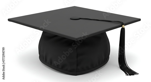 Close-up of black graduation cap with tassel, isolated on white background