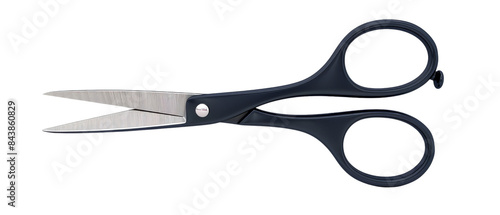 Close-up of black handled scissors with silver blades.