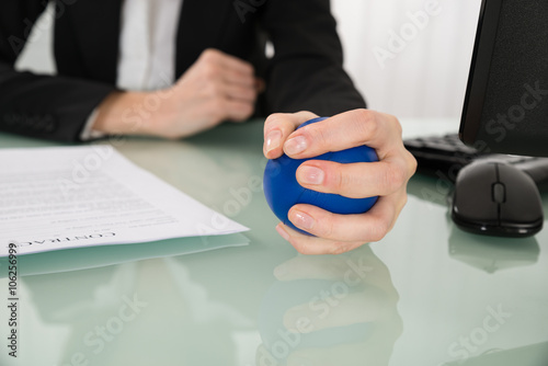 Close-up Of Businesswoman Pressing Stressball