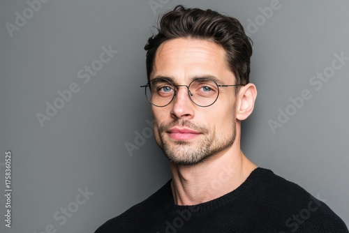 closeup, professional, man, goggles, calm, expression, solid, grey, background, minimalist, portrait, clean, left, side, advertisement, copy, male, adult, person, business, corporate, serious, composed, confident, emotion, office, studio, head shot, stock, image, advertising, executive, finance, marketing, professionalism, concentration