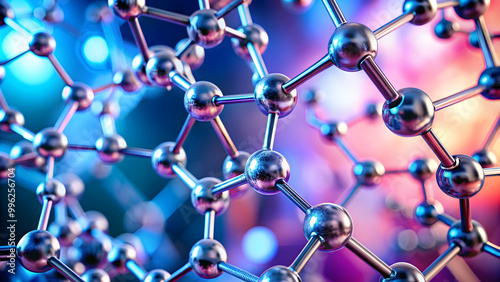 Closeup of carbon chemical structure on pink and blue background with blurred background, carbon, chemical structure