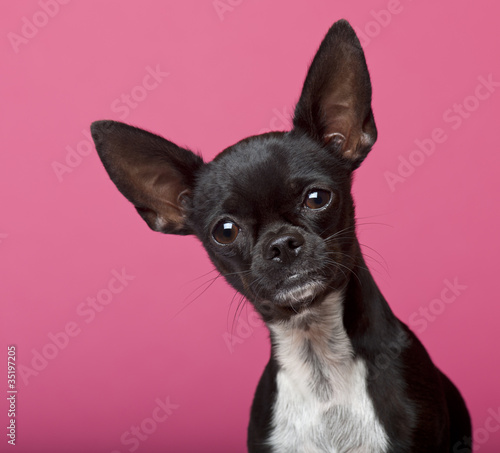 chihuahua, pet, dog, closeup, pink, animal themes, one animal, no people, pet, cut-out, breed, creature, young, front view, pedigree, black, animal, vertebrate, studio, pedigreed, animal head, studio shot, indoor, isolated, portrait, domestic, canino, square, head shot, mammal, purebred, whisker