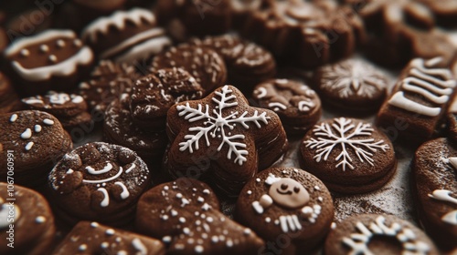 Close-up of chocolates with snowflakes, perfect for winter treats.