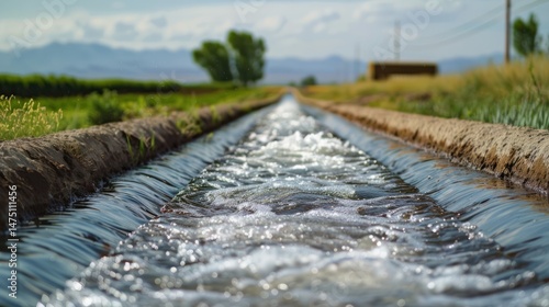 Close-up of clear water in irrigation used for agricultural irrigation. Generated AI image